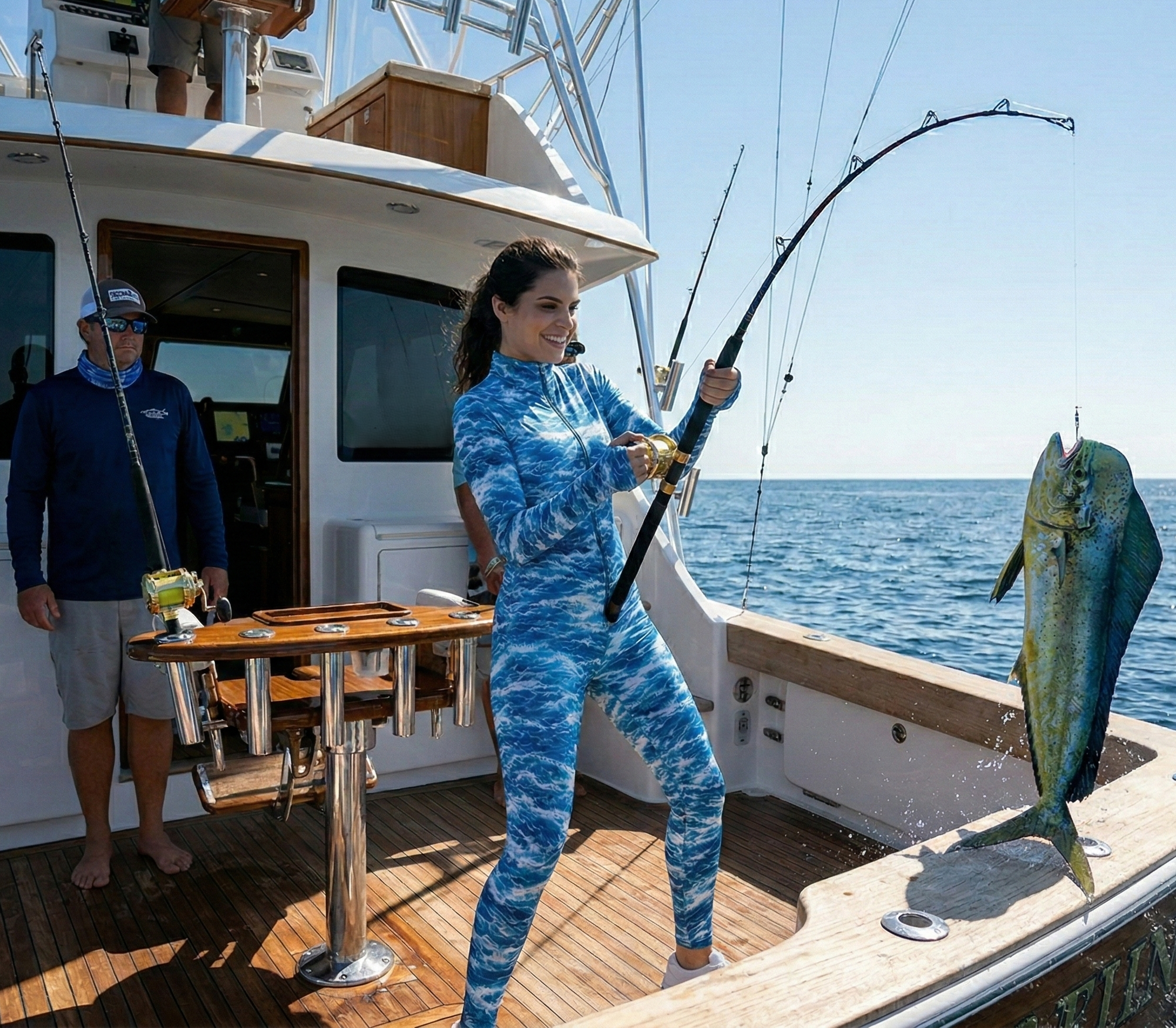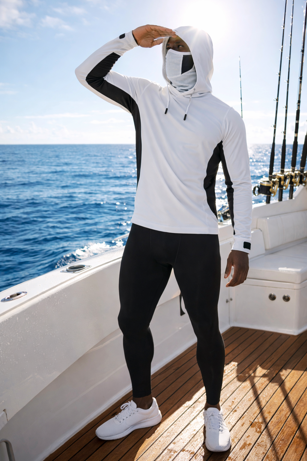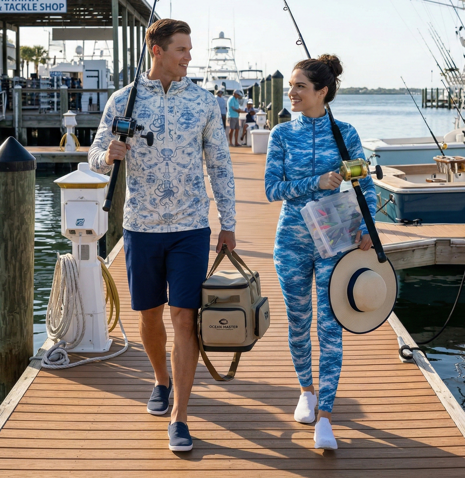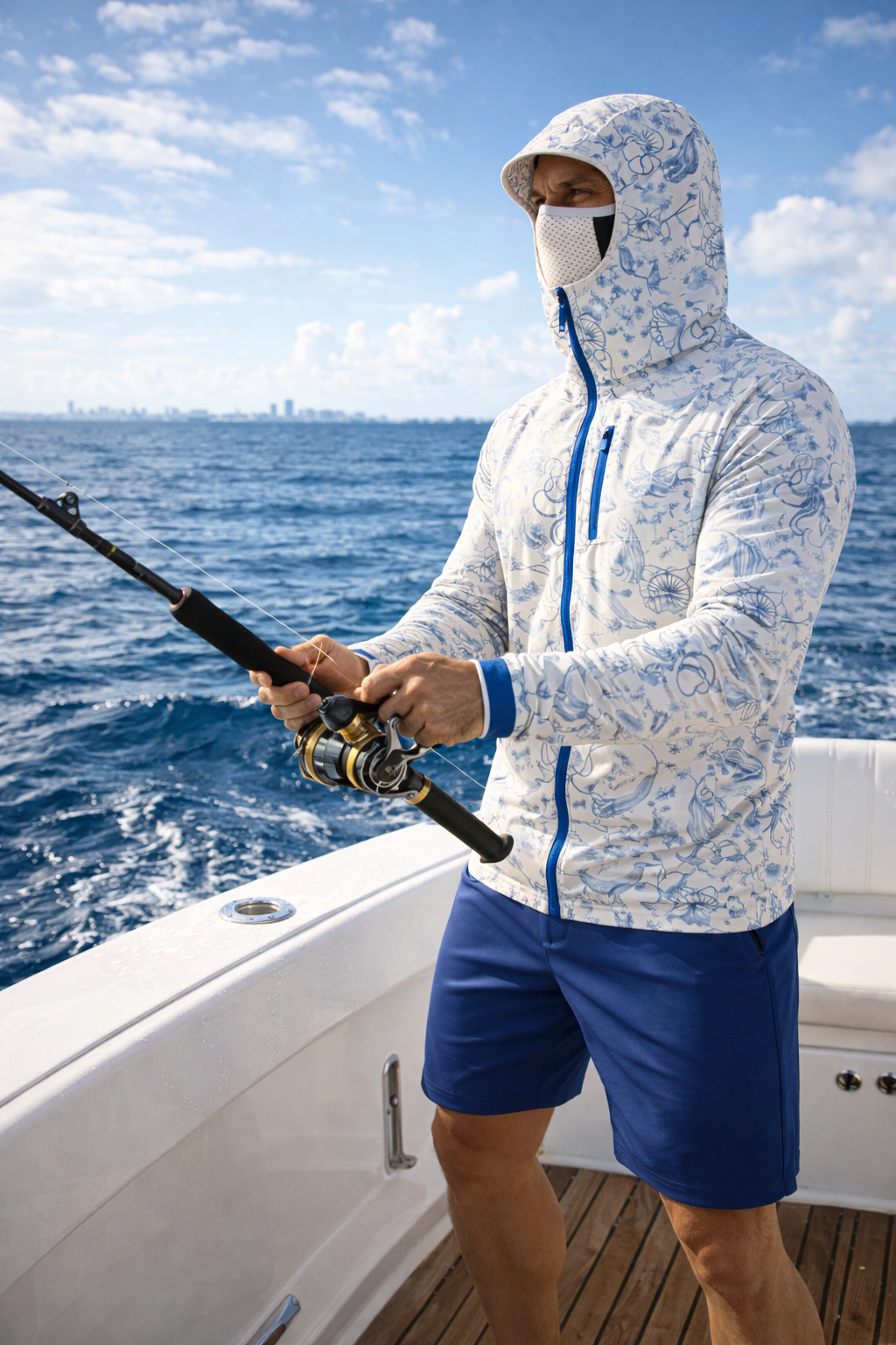 Style in this lifestyle is functional, but still Miami-clean. Sun protection is non-negotiable, and comfort matters: lightweight long sleeves, breathable fabrics, hats, polarized sunglasses, and gear that can handle heat, spray, and movement. The look is practical but sharp—ready for the boat, the dock, and whatever the day turns into.